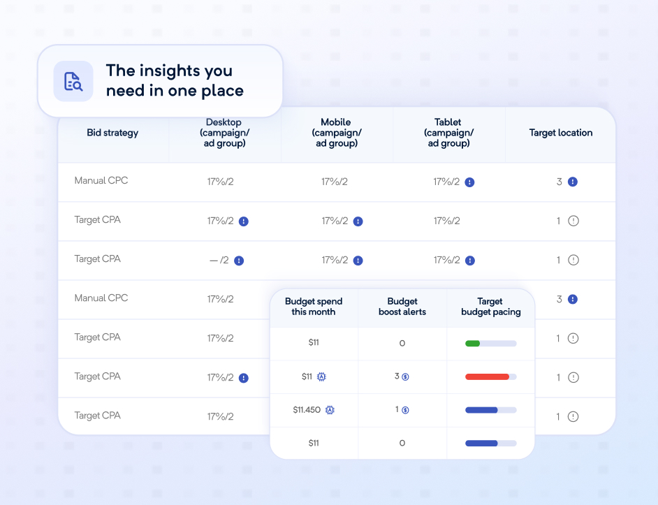 Track, test and optimize bid adjustments with clear visual