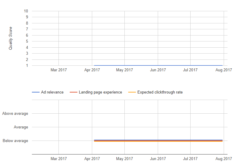 If this is your quality score, you have a problem. The keyword was launched, it did terrible, and no one cared. A flatline at a 1 (this keyword could have 100k+ impressions a month) needs to be fixed – now.