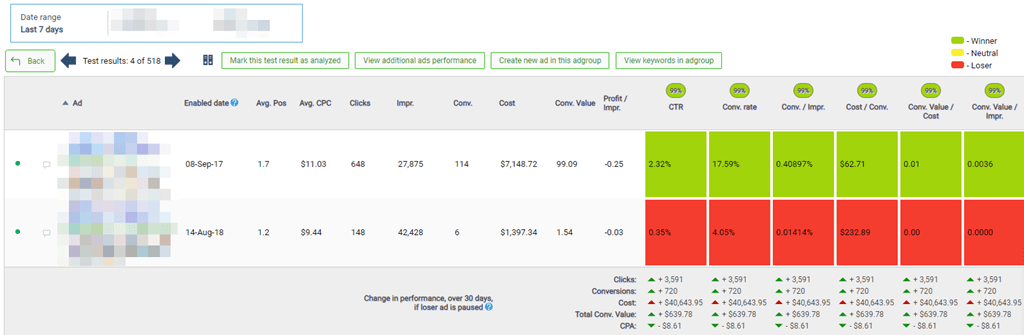 If you’d like to automate this part of Google AdWords campaign management and easily choose winner and loser ads; take a look at adalysis.com.