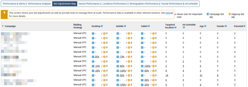 To make bid adjustments easy to work with, we launched an entire suite of bid adjustment tools recently, including an adjustment map so you can easily see all of your adjustments in a single place along with easy ways to aggregate your data and set bid adjustments.