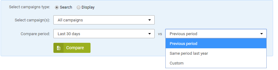 Once you decided your time frame and the campaigns you want to compare, the next step is to choose the time frame for which you will compare the data.